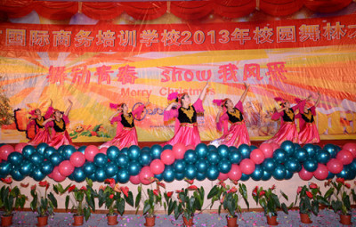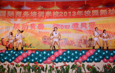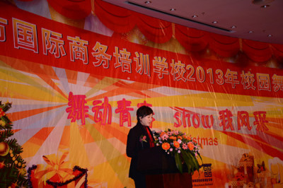 谷校长为2013年圣诞节舞林大会致辞,为IBS过去的一年做总结,并展望更加辉煌的未来。谷校长宣布“2013年圣诞节舞林大会现在开始”,话音刚落,礼炮随之响起,预示着晚会正式开始了。