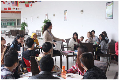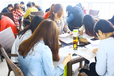 为了更好地感受明媚的春光,英语53班的同学们也把课堂搬到了更为开阔的室外。