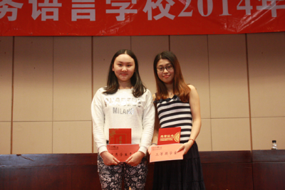 办公室蔡文婴主任和招生办咨询主管徐晓娜老师与荣获“2014年度优秀学生干部”称号的同学合影留念