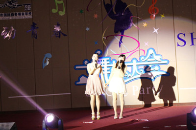 紧接着远光灯一闪,美女老师Celia和Yummy带来《铃儿响叮当》的英文圣诞歌曲,甜美歌声引起全场霎时尖叫!音乐接近尾声,观众仍是意犹未尽,主持人还未上场,圣诞老人扛着礼包在观众席上派发礼物,充满圣诞气氛的舞会在闹腾的观众声中拉开序幕!