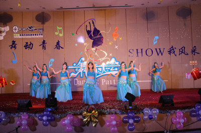 主持人还未上场,IBS教师挪着舞步欢快入场。《Nobody》快节奏才刚开始扭动,观众席上的掌声就阵阵传来。这不禁让我感叹,IBS男教师的魅力不亚于各种天王小巨星!女教师舞技更胜一筹,《夜上海》片段风情上场,扇面和旗袍加上魅惑的音乐赢得观众哨声不断。舞蹈串烧是一个接一个,接着《Sorrysorry》的音乐顿时让现场观众惊呼欢腾。