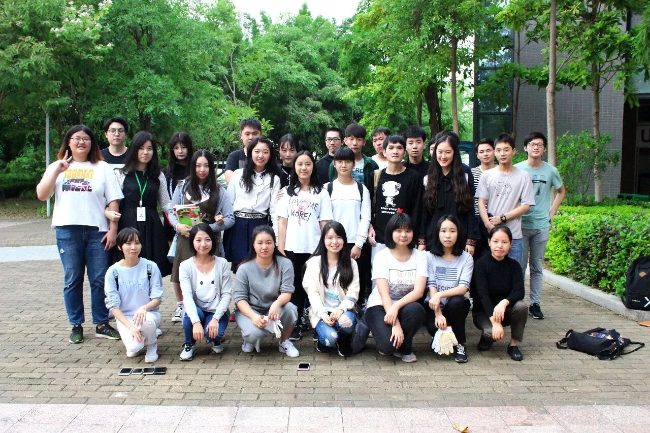 日语的同学们早早来到场地附近集合,为自己班级的参赛选手加油