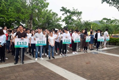 拔河比赛开幕式,十五支队伍一字排开,展现出各自班级的精神风貌。