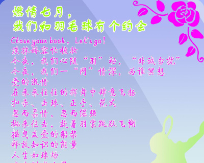 燃情七月,我们和羽毛球有个约会 Close your book,Let's go!