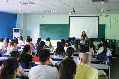 “选择iBS就像谈恋爱,一开始要先了解他,认识他,然后选择他,最后把他娶回家。”宋键校长风趣幽默且语重心长的讲话把开学式推向了高潮。他说:“世界上最难的三件事就是戒烟、减肥和学外语,因为这些都是在和人性做斗争。”英语专业毕业的他还用PPT形式,深入浅出地和大家分享了英语学习的体会,分析英语和中文的差别、如何学好英语和应该注重学习的“质”而不是“量”,勉励新生要互相尊重,共同进步,祝愿新生在IBS学有所成,开心快乐。
