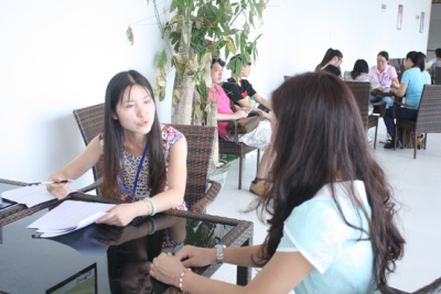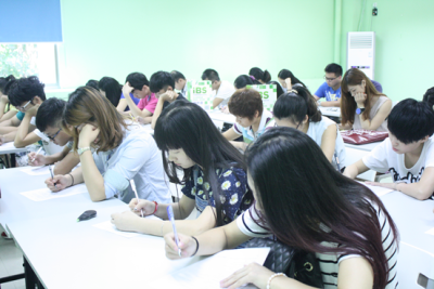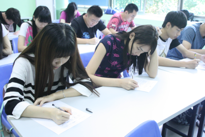 开学式结束后,由英语教学部组织英语班的新同学进行笔试和口语考试,并按照成绩进行了分班。
