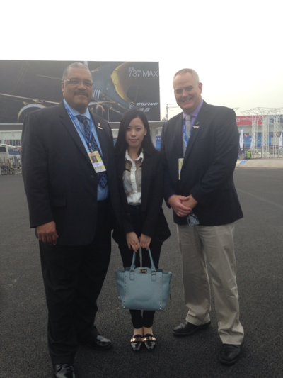 面对强大的英语母语国家美国代表团及高端的航展业务知识,IBS志愿者翻译团的每个成员都表现出了较强的沉着应战能力。在执行校长宋键的策划和领导下,在资深英语教研室主任Shirley的指导下,进行了两天的紧张集训。在航展期间,志愿者翻译团以专业尽责的职业品质、娴熟精湛的翻译水平博得了本届航展重要参展商之一美国威奇托市政府和航空产业代表团的高度赞扬。