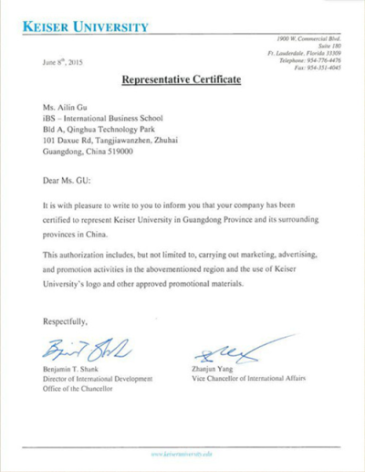 近日,珠海iBS学校可谓喜事连连。在社会认知度、认可度逐年提升,多语种、多门类争艳校园,业内专项评优连创佳绩之时,凭借17年丰富的外语培训阅历和花样年华,获得了享誉世界的美国凯泽大学的青睐并授权。共同的价值观带来了东西方文化的碰撞。