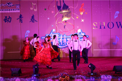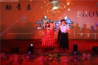 校园舞林大会中葡萄牙语学员表演葡国风情舞蹈