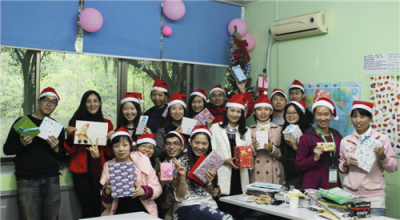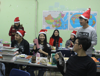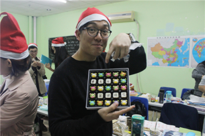 Jingle Bells, Jingle Bells, Jingle all the way……圣诞歌播放着,既欢乐又温馨。Celia老师与小伙伴们戴上圣诞帽,哼着圣诞歌,礼物交换趴开始啦!