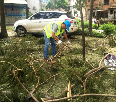 8月26日一早,iBS外国语学院的师生志愿者们就自发分为两队。一队由董事长谷艾琳女士带队跟随志愿者团队,另一队跟随主校区所在地园区党组织部,分别前往野狸岛和鸡山村参与救灾活动。