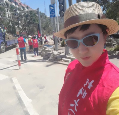 iBS志愿者们顶着炎炎烈日清理路面,修复社区环境。