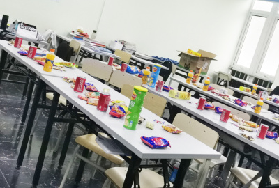 为了活跃气氛,班主任很用心为同学们准备了各种各样的小零食和饮料,让同学们在交流会上,既可以轻松交流,也感受到了老师对他们的关爱。