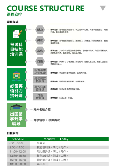 iBS全日制雅思班采用“封闭式”管理学习模式,食宿学一体化,全日制、浸泡式学习,更有氛围和动力,规避零散、碎片化学习的弊端,小班教学,心无旁骛,全力备战!这意味着你的学习生活远离喧嚣,没有商场和娱乐的诱惑,并将有一段时间全程专注在学英语这件事情上,高效提升雅思能力。