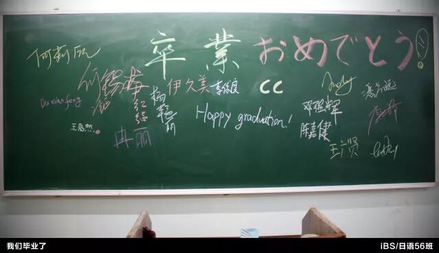 26 01-2018 毕业了,我们如同一叶扁舟即将漂流入海,各自行向不同的远方。 但我知道,终有一日,我们还会相聚。到那时,愿你初心仍在,笑容不改! 致全日制日语56班 NO°/56 致 即将毕业的你 梦想 春雷,夏风,秋霜,冬雪 我们经历过的那些风景, 我们感受过的那些颜色。 在心中,永记。 56 陪伴是最长情的告白 一年时光, 说快也快,说短更短 但我从不后悔,与你们相遇 毕业 离开不是离别,是启航,是去追寻我们美丽的梦想!哪怕眼含不舍,我们也要笑着上路。多年以后,当我们再回首,一定还会记得,那初夏的雨中,也曾有你我的笑脸,那和煦的阳光下,也曾映照着你我如水的年华! iBS外语 Fri.Feb.18 愿望清单 毕业后挣到一笔钱能安安心心的出去旅游一趟,富游,不要穷游,怎么舒服怎么玩。 毕业后听一次喜欢的歌手的演唱会,然后在现场感动的大哭起来。 毕业后的某一天,能够再和你们相见。 业 iBS外语 和同学在一起的时间即将流逝,在每个人心中留下美好的记忆,忆起过去发生的点点滴滴,不尽泪潸潸而不止,在学校的生活快乐无比,是记忆深处美丽的回忆。 祝大家毕业快乐!