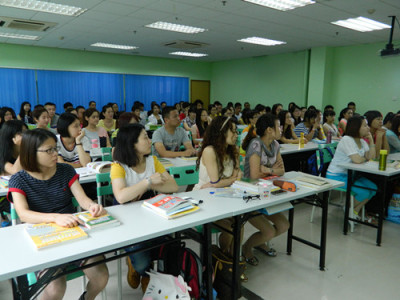 3130 JJ (开班现场)7月17日全日制英语 (开班现场)7月17日全日制英语班,2个英语班,1个日语班,首日在大课室统一听教务主任,讲解一年的课程安排。 (开班现场)7月17日全日制英语班,2个英语班,1个日语班,首日在大课室统一听教务主任,讲解一年的课程安排。2个英语班讲会在这个月底分班,所以暂时没有单独班级照片点击了解全日制英语培训信息