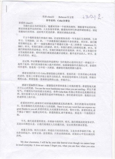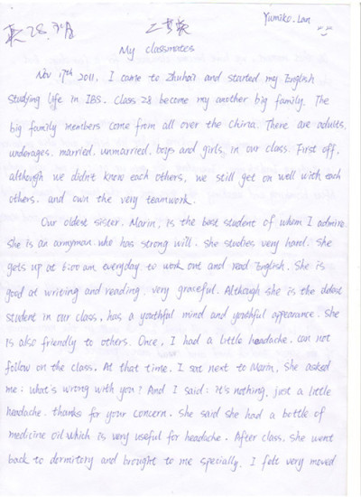 IBS里的每个老师,我都很喜欢。虽然他们有不同的教学方式,但是目的只有一个,就是尽自己最大的努力,将知识教授给我们。上课时,对我们犯的语法错误,老师会耐心地帮我们指出来,并予以纠正。对于课后我们提到的问题,老师也会耐心的讲解,非常感谢他们。