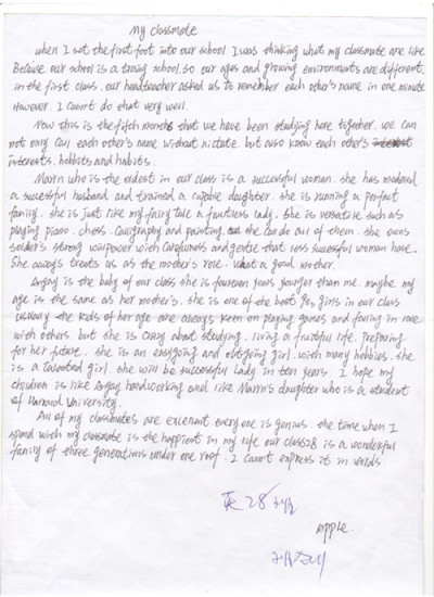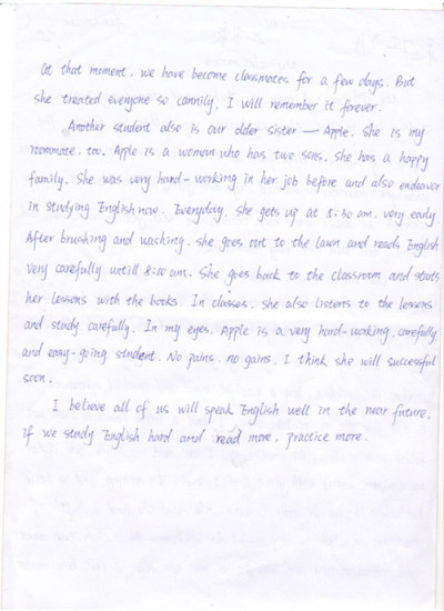在这里,我不仅提高了英语口语水平,同时我也学到了很多其他的东西,如许多外国文化,及做人做事的道理等!